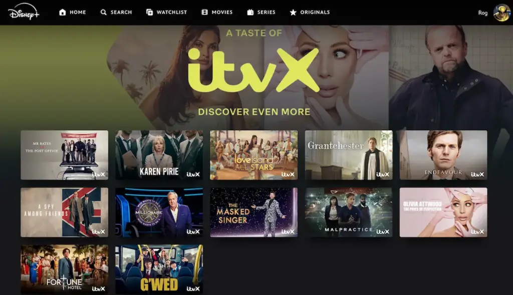 ITVX hadde over 15 000 timer med innhold ved lansering og legger til nye serier hver uke. Siden juli 2025 har tjenesten også en «Taste of Disney+»-seksjon med utvalgte Disney+-titler som oppdateres annenhver måned. Det betyr at du i tillegg til ITVs egenproduksjoner kan se serier som The Bear (sesong 1), Andor, Only Murders in the Building og The Kardashians uten ekstra kostnad.