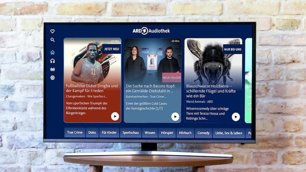 ARD er et samarbeid mellom regionale TV-stasjoner, mens ZDF er en sentralisert nasjonal kanal. Begge har store gratis mediatheker med nyheter, drama og dokumentarer.