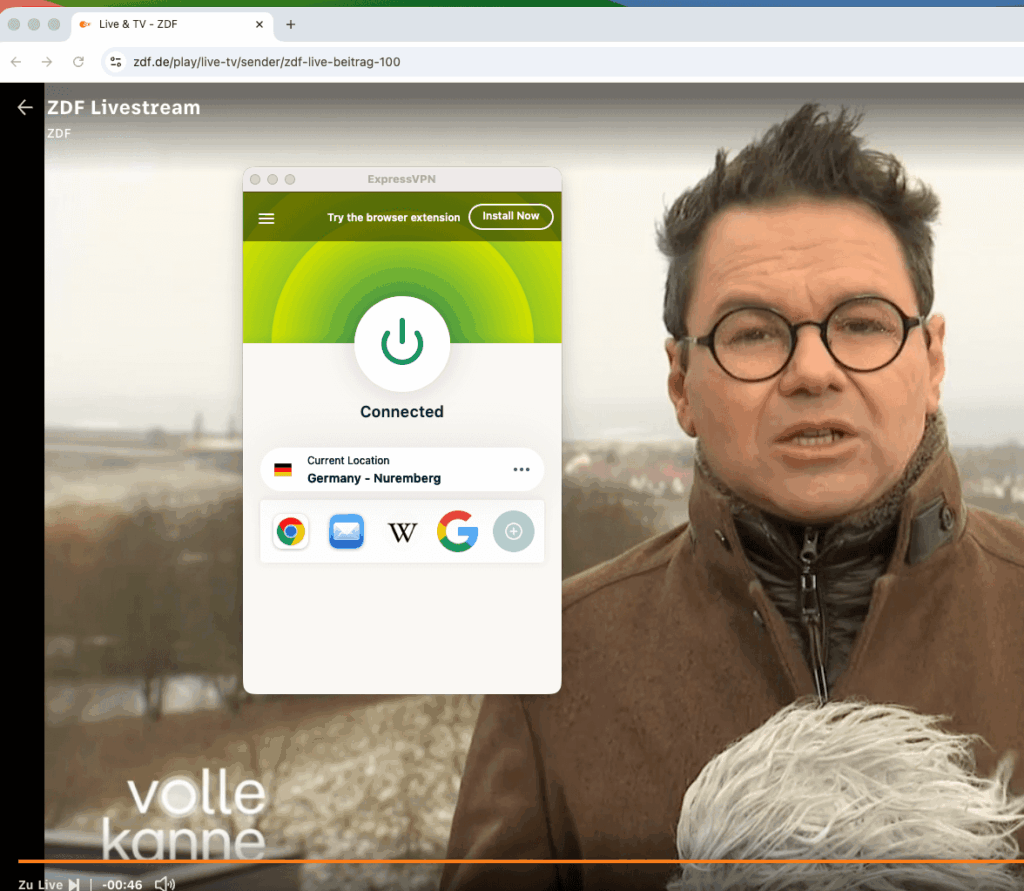 ExpressVPN fungerte feilfritt med alle tyske strømmetjenester vi testet, inkludert ARD, ZDF, RTL+ og Joyn. Tilkoblingen til tyske servere var rask nok for HD-strømming uten buffring, og vi ble aldri blokkert under testperioden.