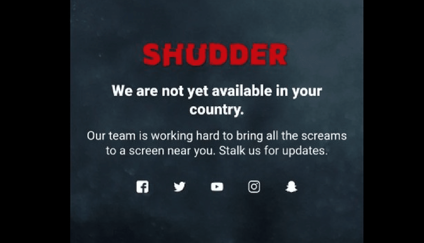 Shudder har blitt en kjent strømmetjeneste for skrekkfans internasjonalt, men den er ikke lansert i Norge. Når man prøver å åpne siden fra norsk IP-adresse, blir innholdet blokkert på grunn av geo-restriksjoner.