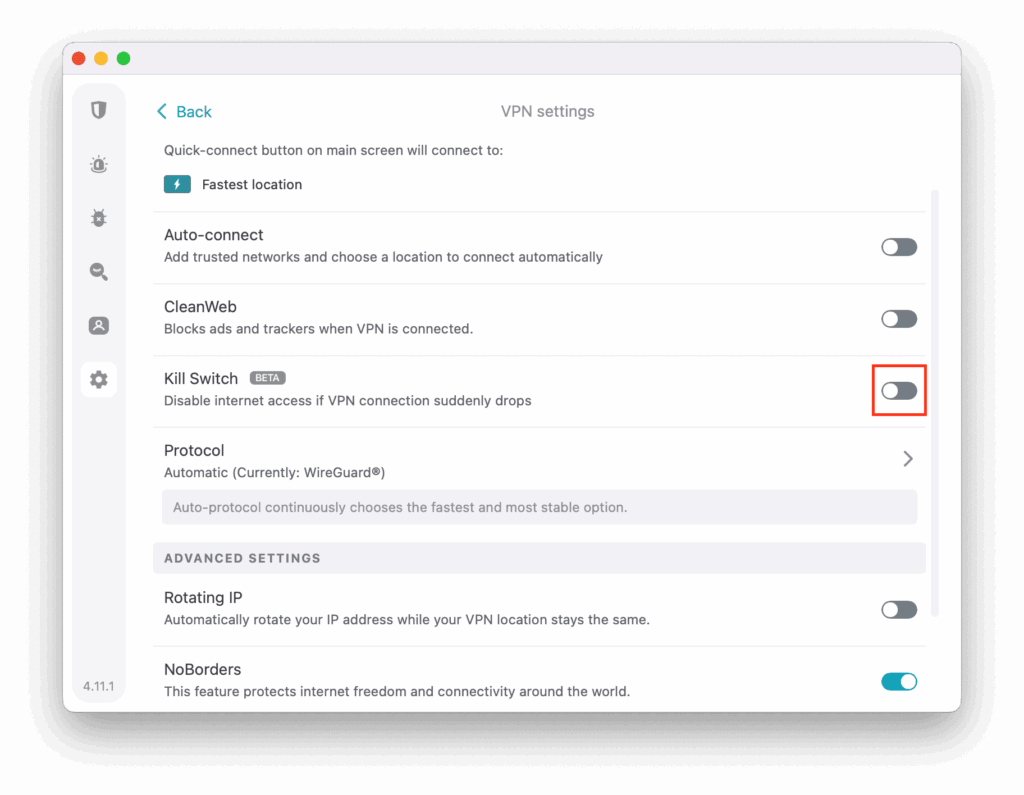 Kill Switch og Leak Protection