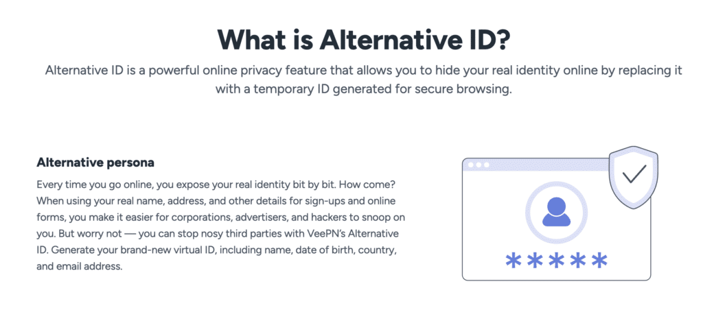 Dette er et unikt og proaktivt personvernverktøy. Når du registrerer deg på nettsteder du ikke stoler helt på, lar Alternative ID deg generere en virtuell personlighet, komplett med et tilfeldig navn, adresse og fødselsdato. Enda viktigere, du kan opprette en anonym e-post som videresender meldinger til din virkelige innboks uten å avsløre din primære adresse. Dette beskytter mot spam og reduserer risikoen for at din virkelige identitet blir kompromittert i et datainnbrudd.